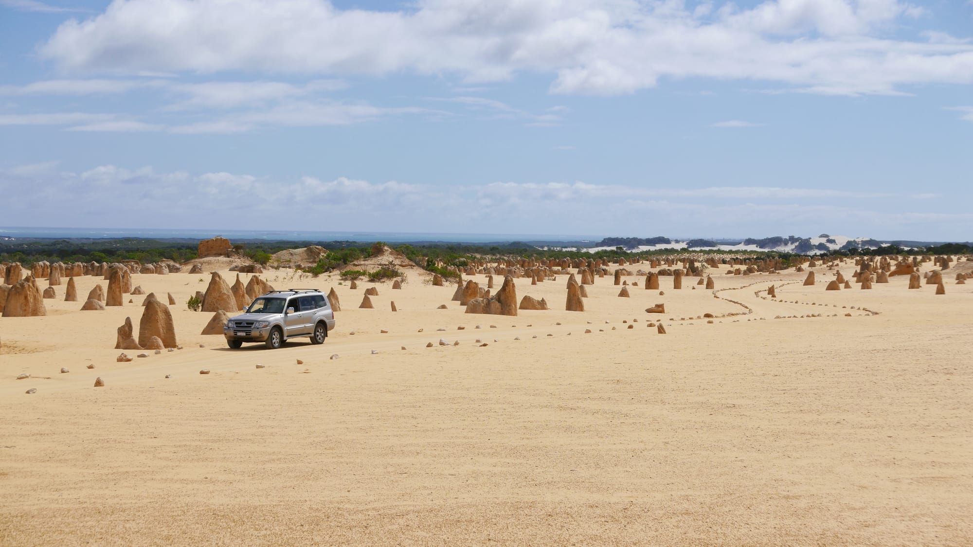 I particularly enjoyed that you could drive around the Pinnacles on the sand — a 4 km, one-way loop: no tarmac roads, just small rocks marking the way. Plus, you didn’t have to stay in the car; you could park and stroll among the stones.